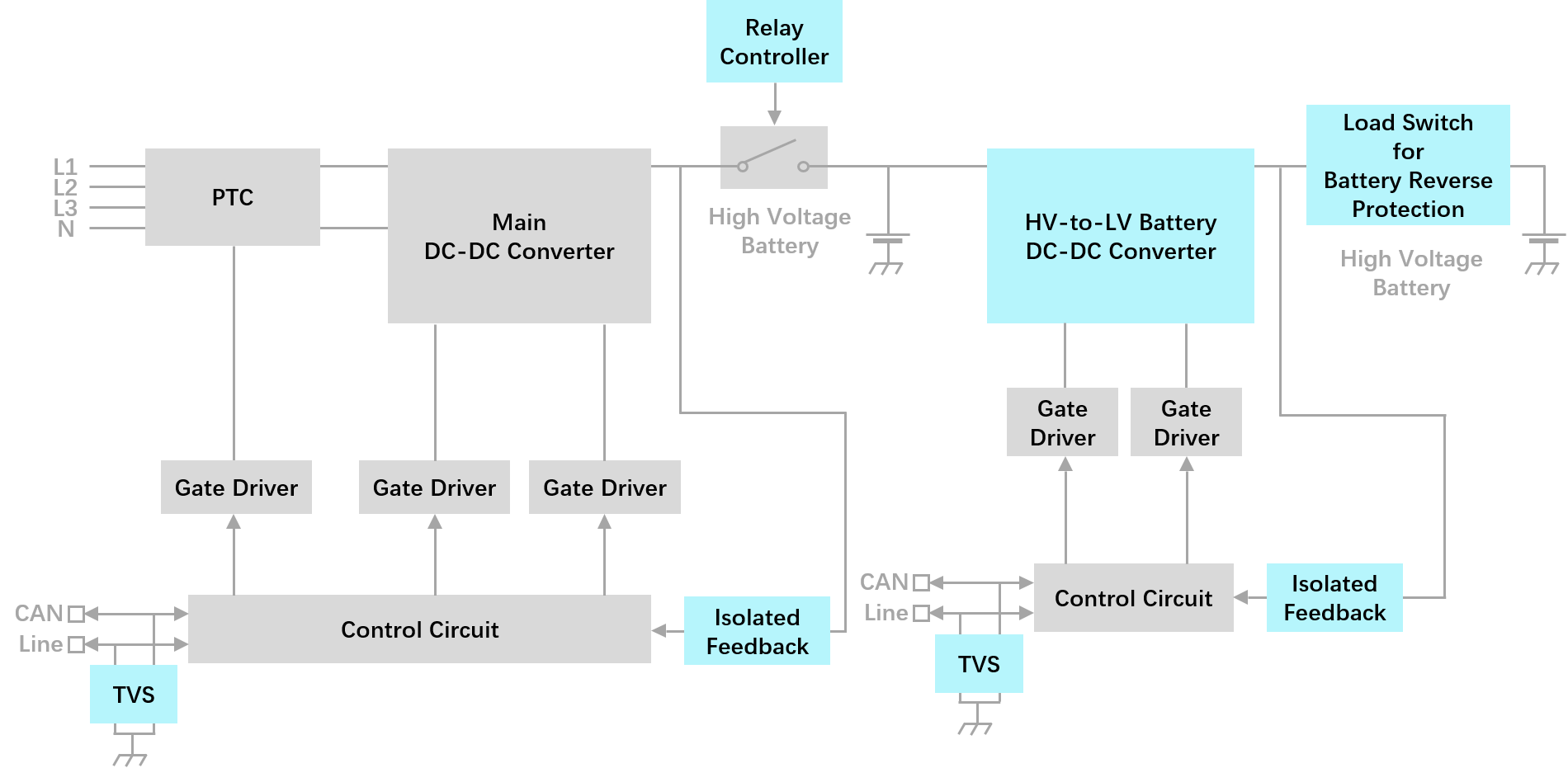 電網(wǎng)中的交流電通過交流充電樁直接給車載充電器 (OBC) 供電,OBC 把 AC 轉(zhuǎn)換成 DC,然后通過配電箱為車內(nèi)的動力電池充電。直流充電樁則包含許多 AC-DC 電源模塊。從目前充電樁市場的狀況來看,有 3 大趨勢:寬范圍的恒定功率、寬范圍的輸出電壓、更高功率的模塊。 兩個主要功率級。首先,功率因素校正 (PFC) 級,保持輸入電流和電壓之間的相位關(guān)系,最大限度地減少線路/電網(wǎng)電流的總諧波失真 (THD) 。這有助于減少任何浪費的無功功率,提高整體能效。 第二功率級是 DC-DC 轉(zhuǎn)換器,它從 PFC 級獲得 DC 輸出,并將其轉(zhuǎn)換為電池充電所需的電平。轉(zhuǎn)換器的輸出電壓和電流基于電池的整體健康狀態(tài)和充電狀態(tài)隨時間變化。 不論是功率因數(shù)校正(PFC)、原邊側(cè) DC-DC、或二次整流,捷捷微電都具有相應(yīng)的解決方案,汽車系列產(chǎn)品涵蓋二極管、MOSFET、TVS 等各類產(chǎn)品。比如:整流+LLC 構(gòu)成了充電樁的基本電路,可采用 FRED(快恢復(fù)二極管)方案;CAN 通訊口的 ESD 保護。